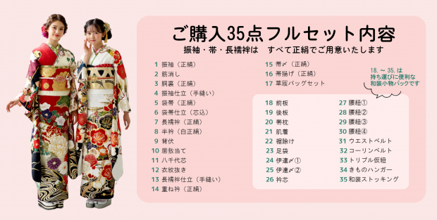 お振袖の金額に関係なく充実したフルセットでご用意させていただきます。